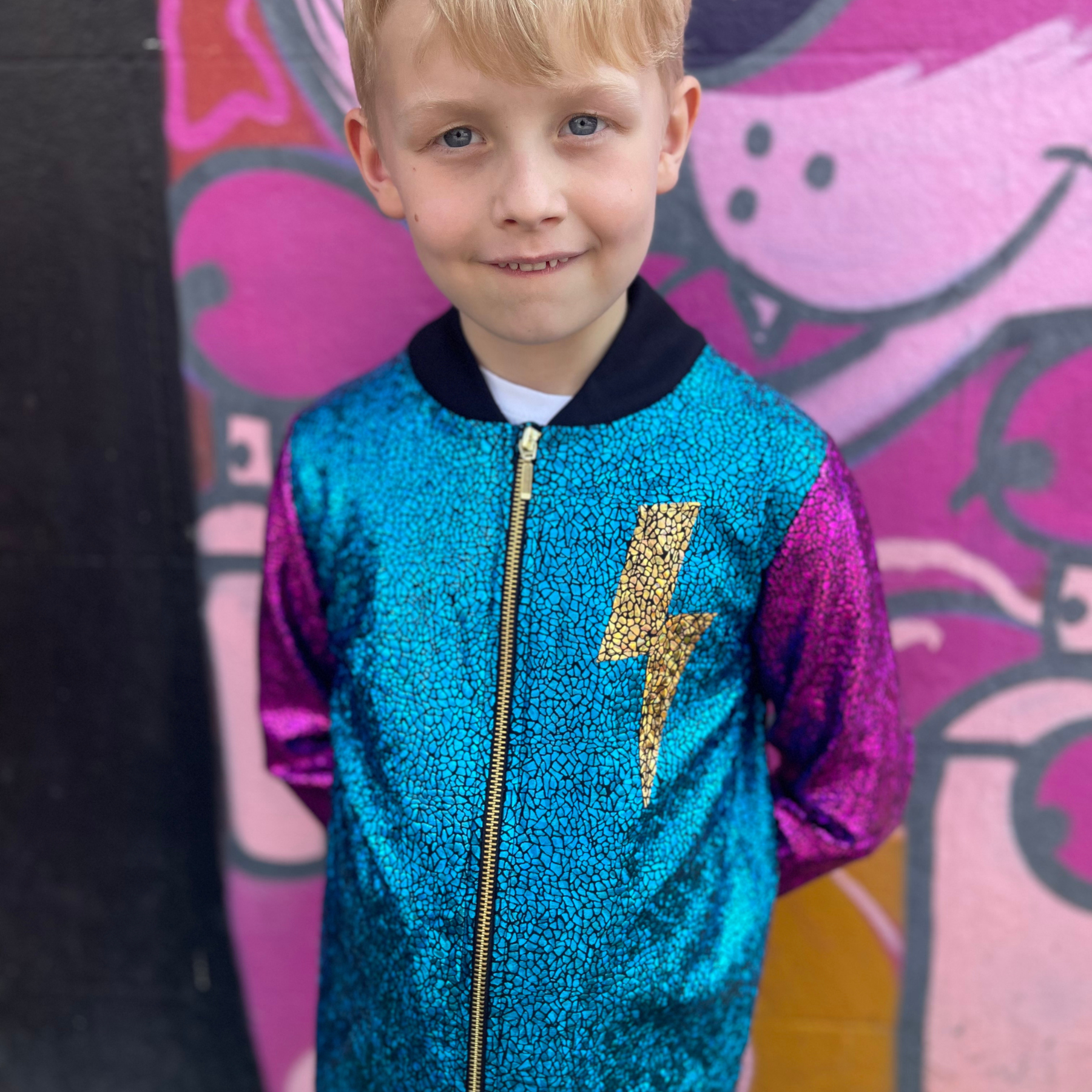Kids Holographic Disco Lightning Bomber Jacket - Gold, Purple & Turquoise | Sparkle Festival & Party Jacket