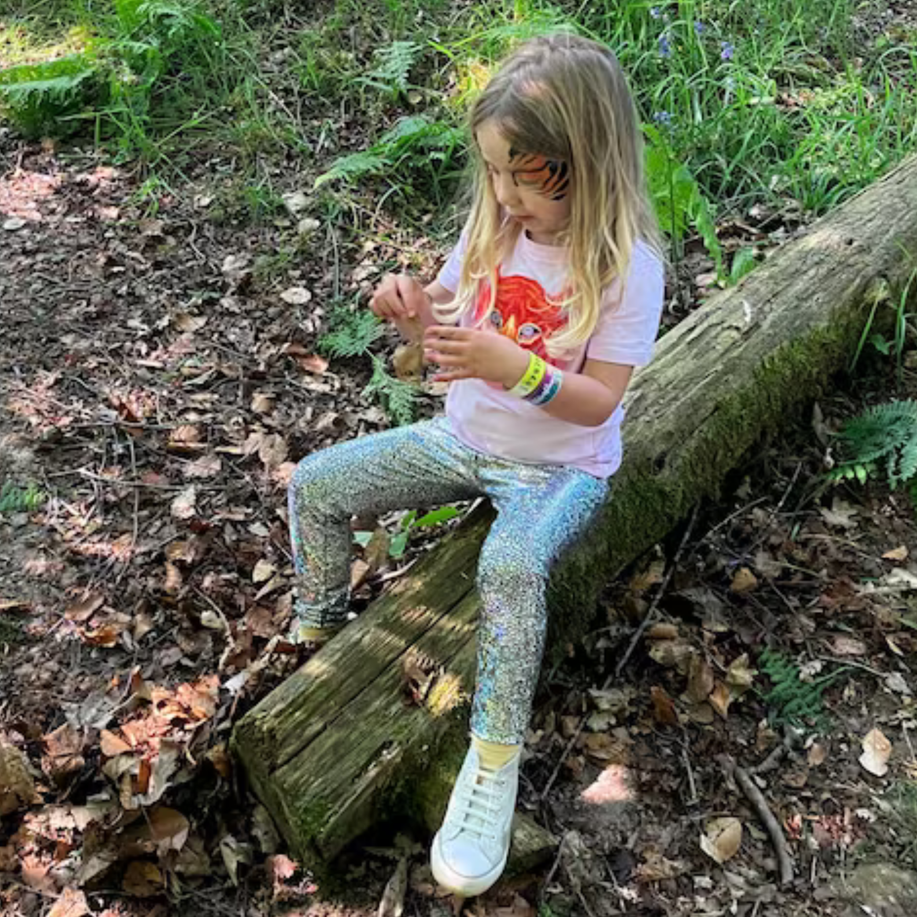 Let your little disco legend shine bright in our kids holographic silver leggings - the perfect statement piece for festivals, parties, dress-ups, discos and everyday sparkle!
