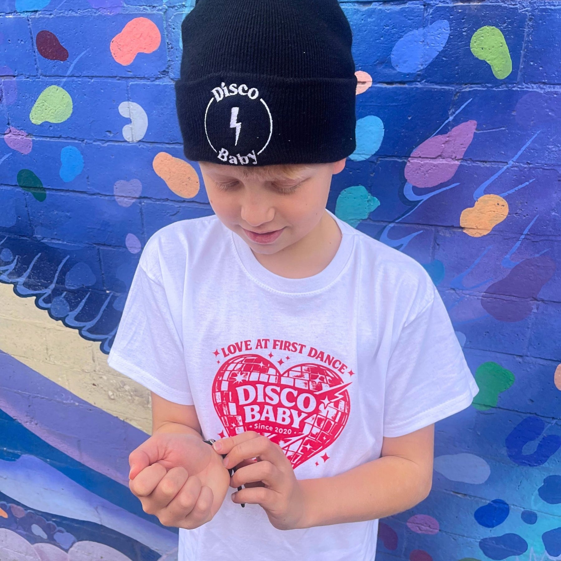 Featuring our retro Disco Baby heart graphic in bold red, this tee is inspired by first dances, first festivals, and that moment the music hits and everything just clicks. It’s playful, nostalgic, and made for kids who don’t do beige.